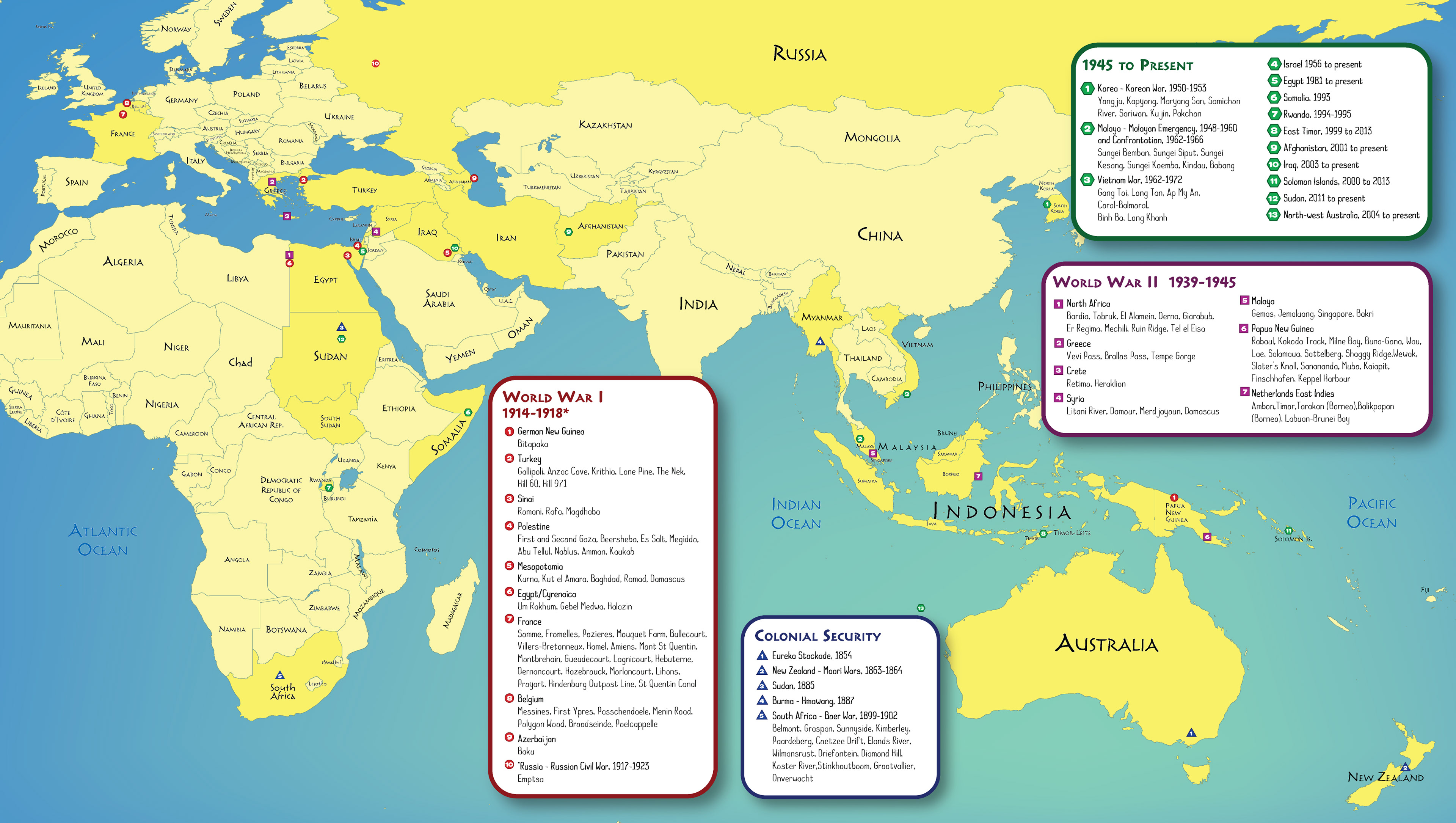 Single map created for a children's history book entitled, "Australia Remembers". Written by Allison Paterson, published by Big Sky Publishing of Sydney, Australia