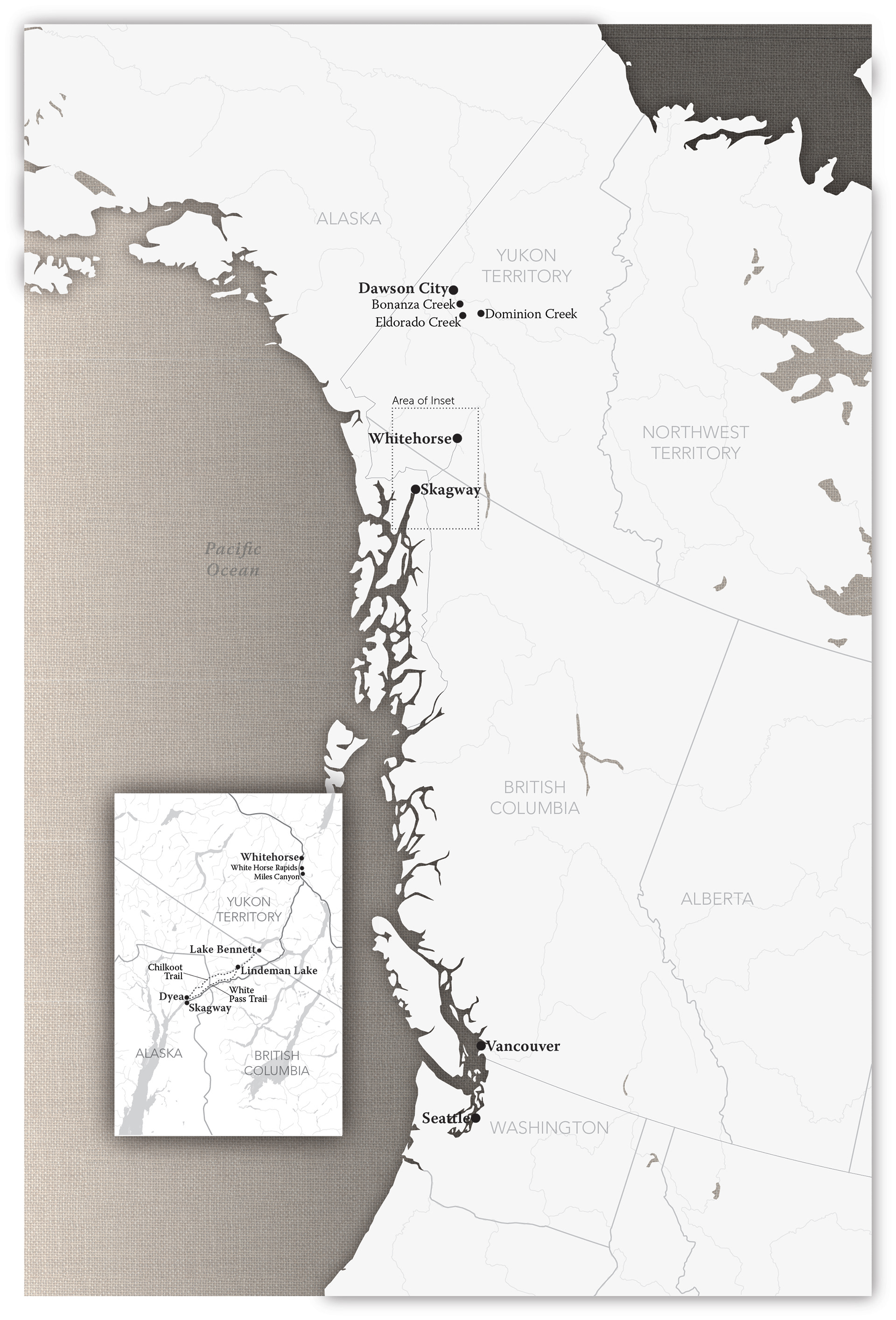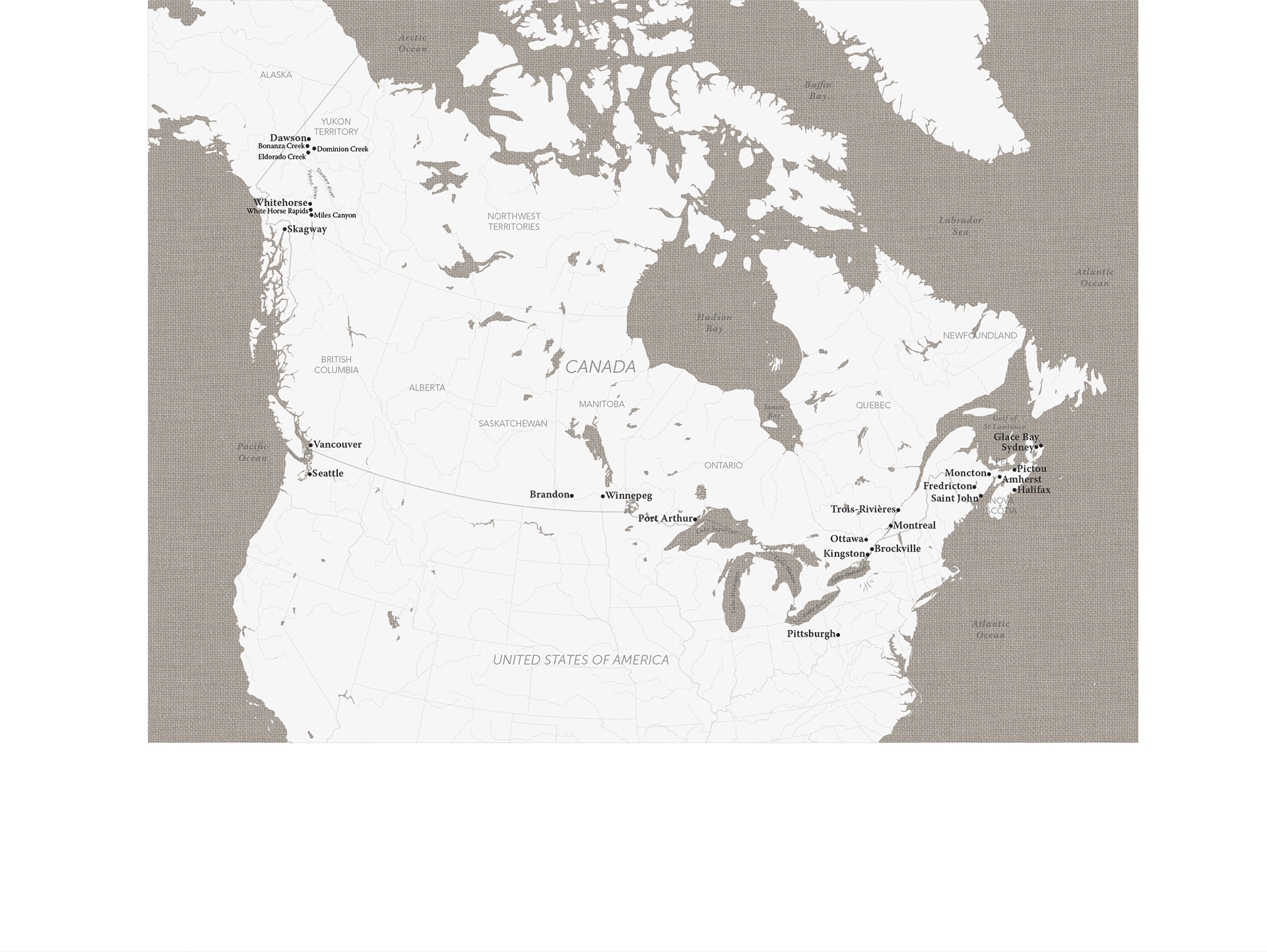 Set of 2 maps created for the book, "Klondikers: Dawson City’s Stanley Cup Challenge and How a Nation Fell in Love with Hockey" Published by ECW Press of Toronto, Canada.