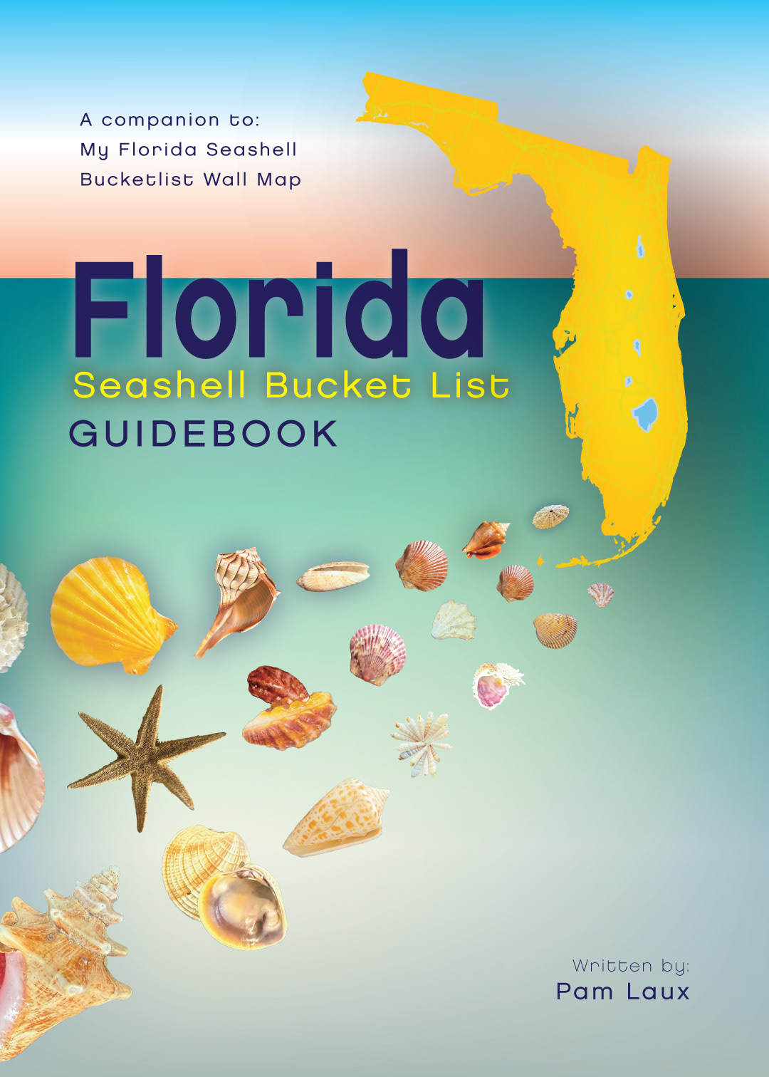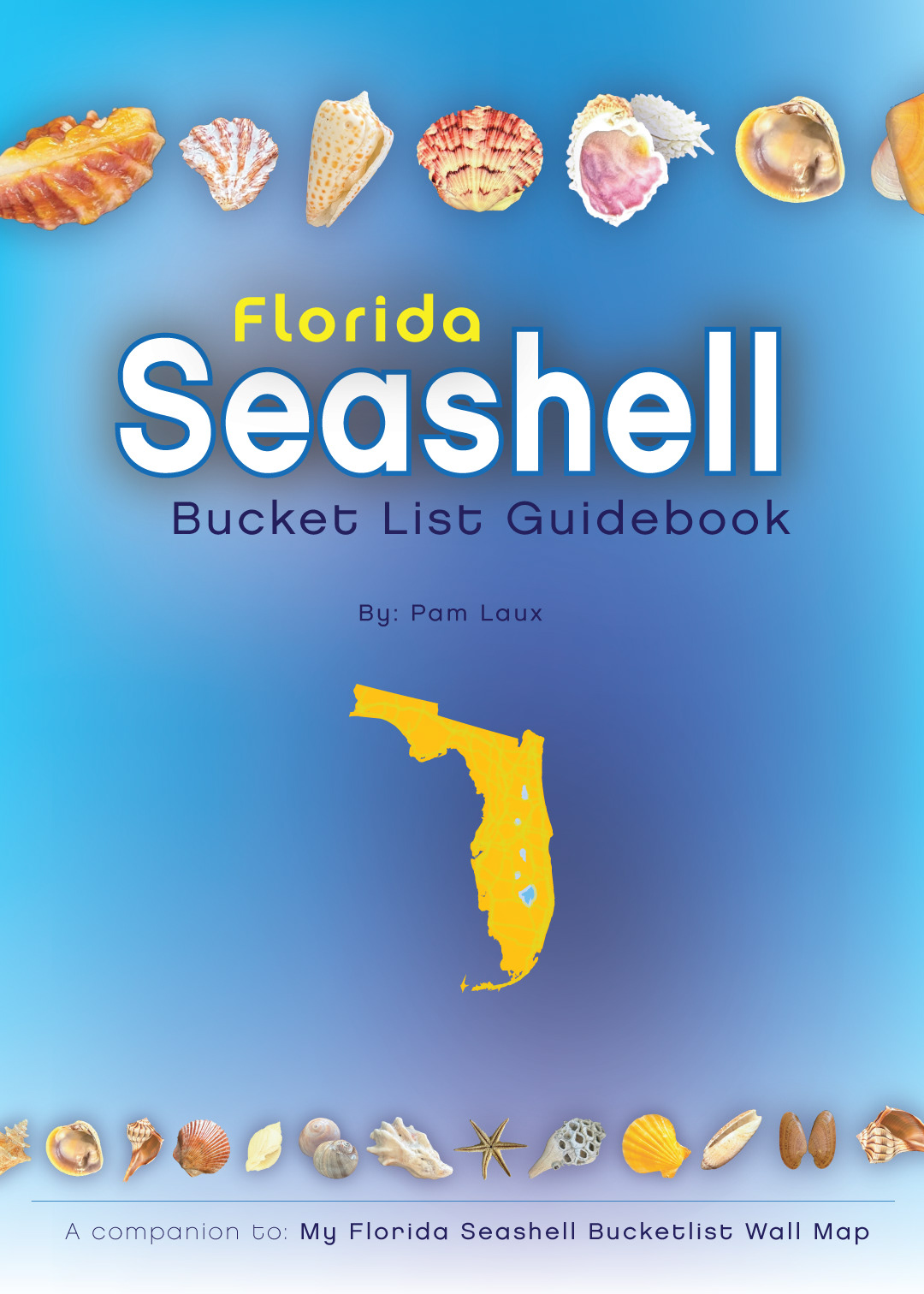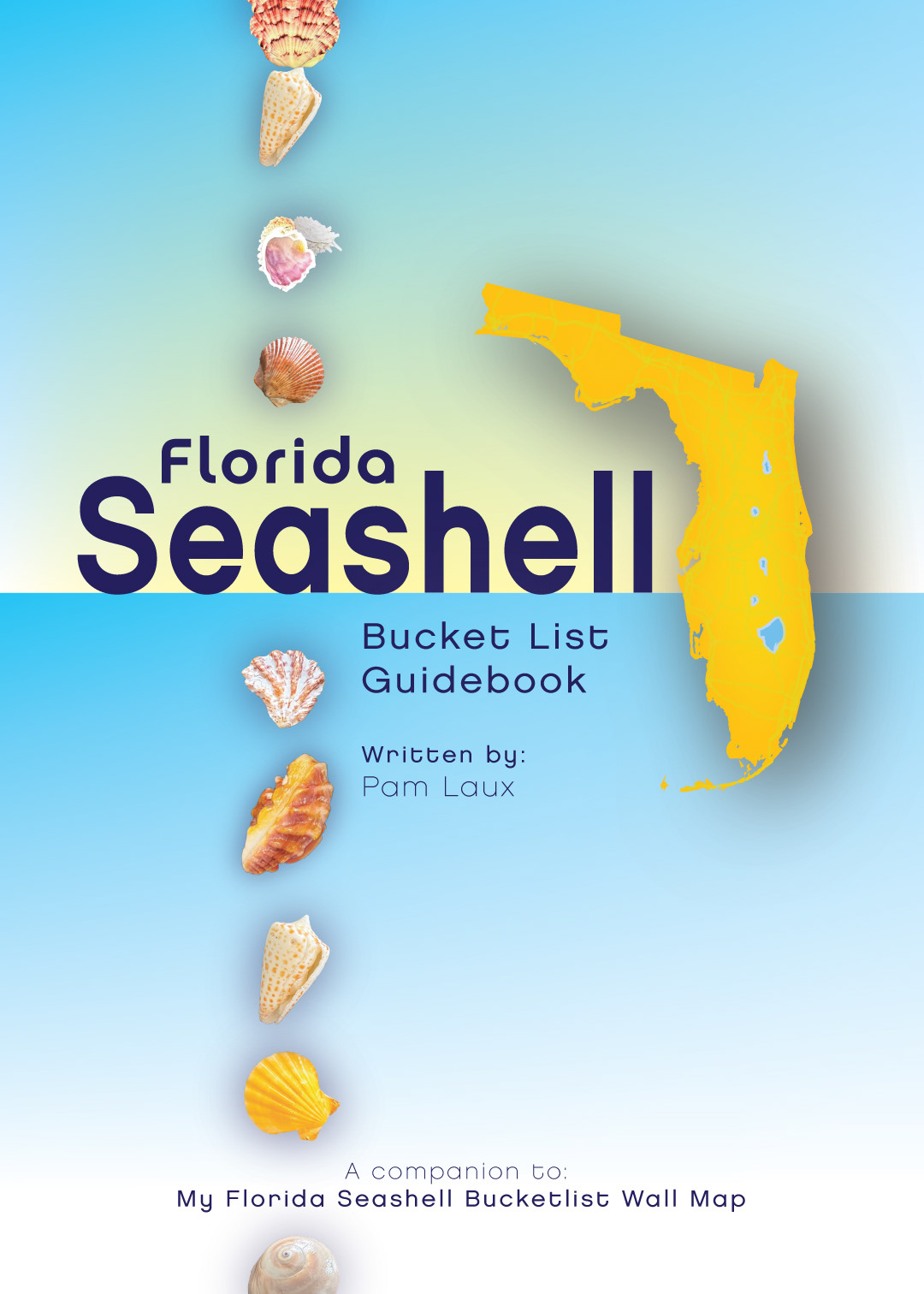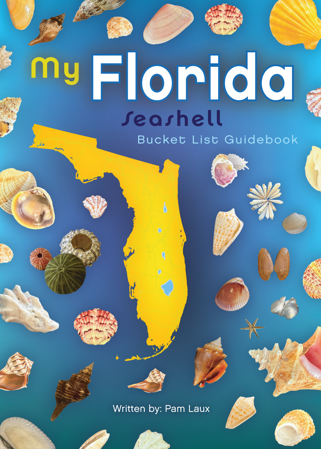 8 book cover ideas for the book entitled, "My Florida Seashell Bucket List Guidebook" written by: Pam Moll
