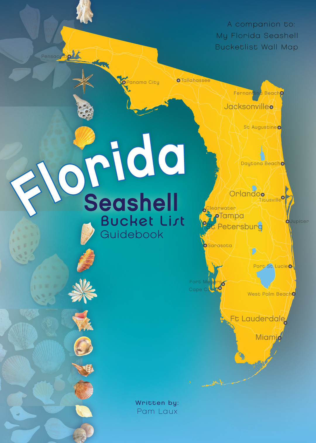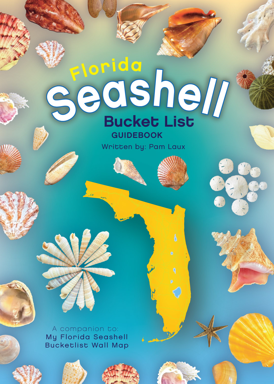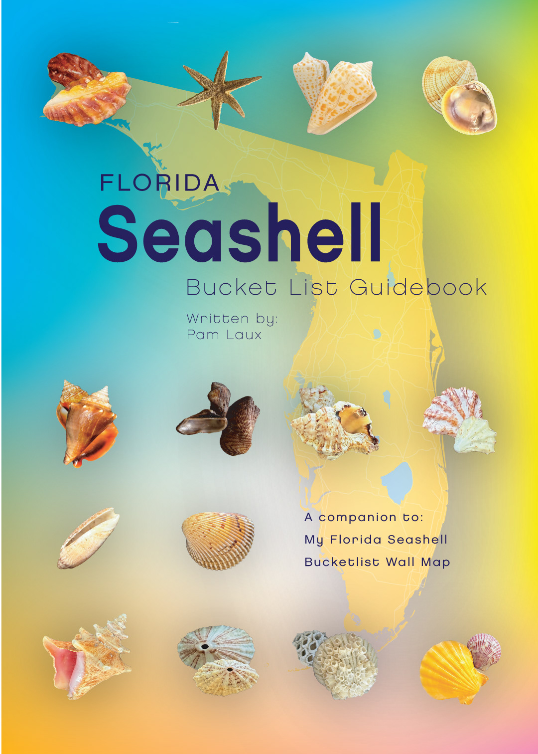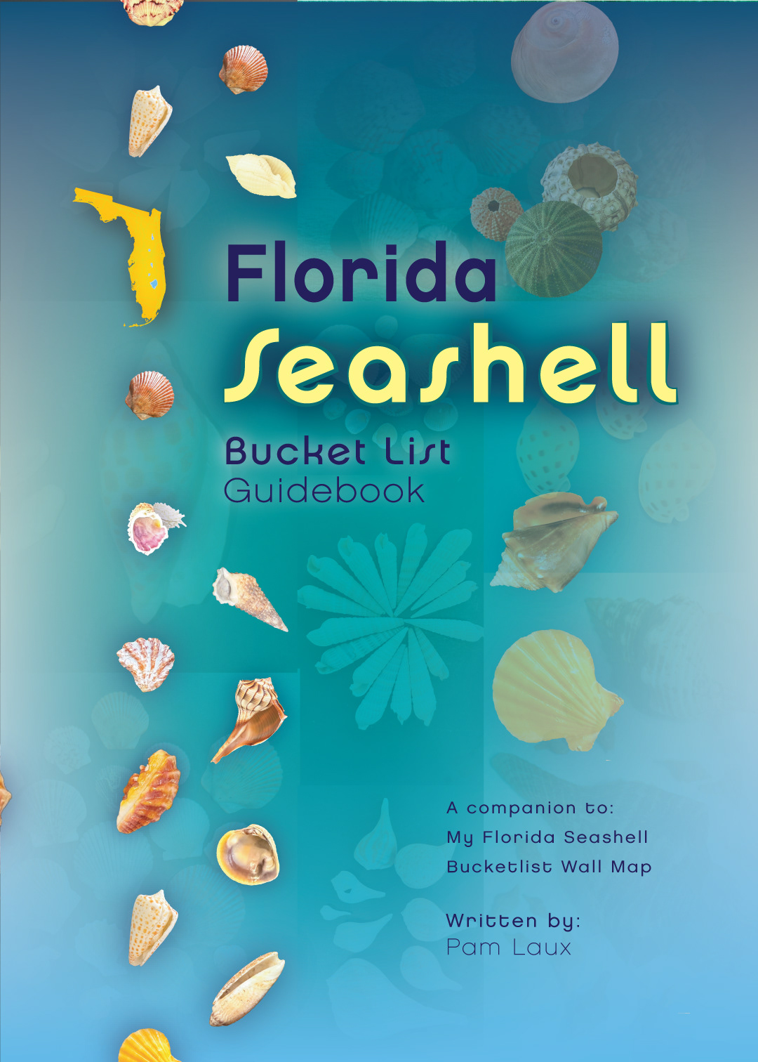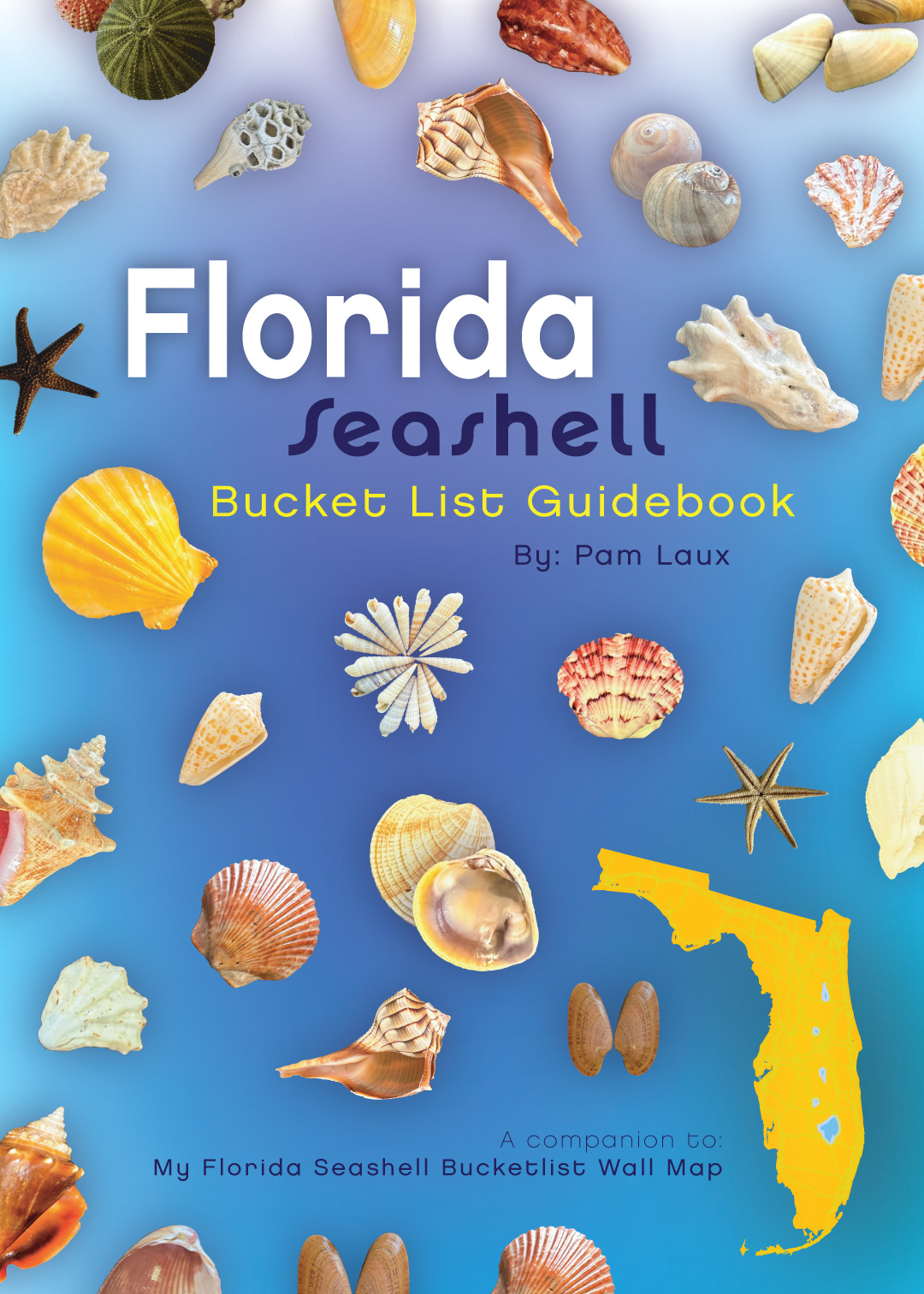 8 book cover ideas for the book entitled, "My Florida Seashell Bucket List Guidebook" written by: Pam Moll