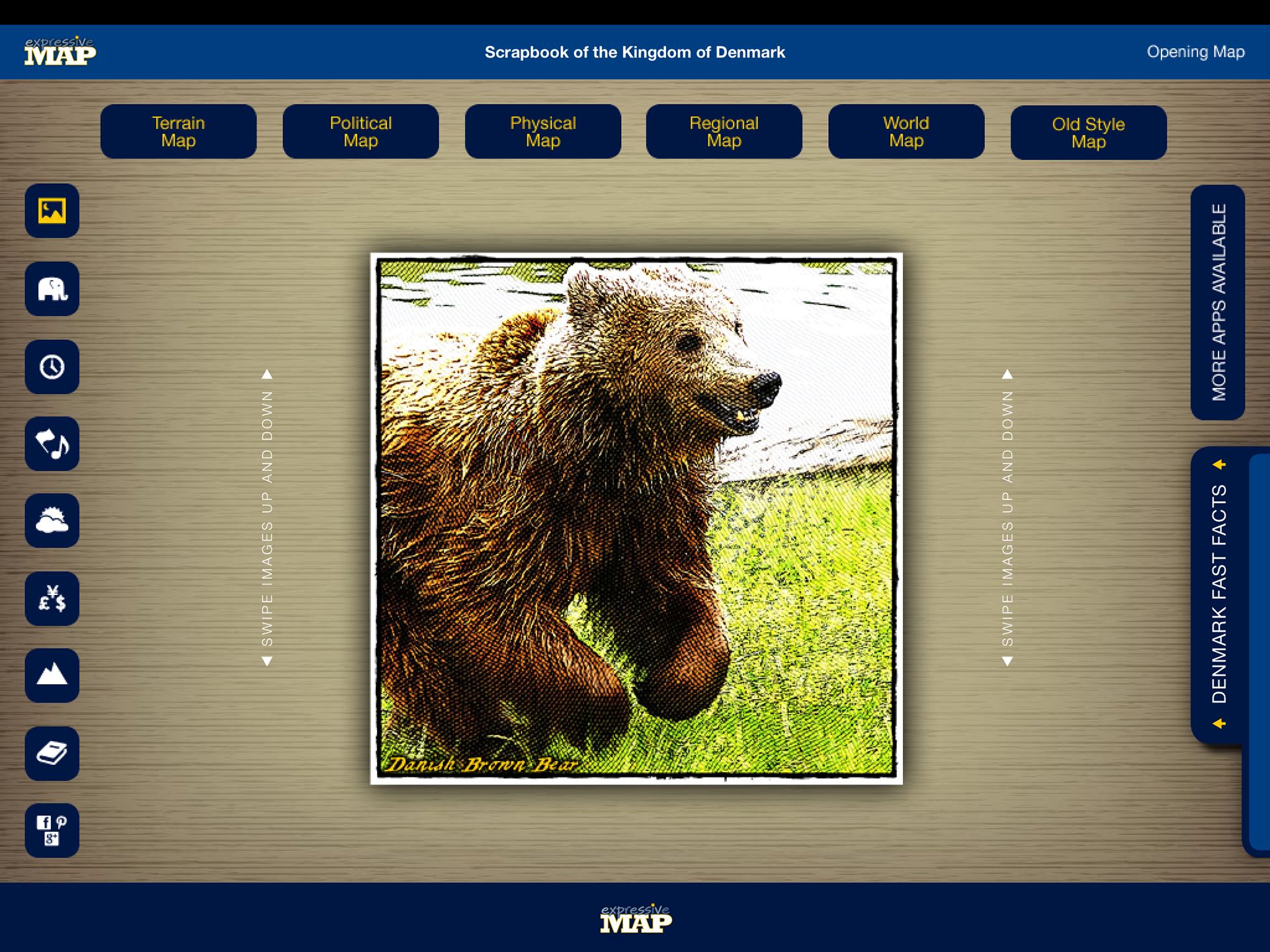 One of 15 iPad digital atlas apps conceived and created in 2013 to be marketed under my illustrated map brand, Expressive Map. All 15 apps were available for purchase on the Apple App Store. I have since made a decision to no longer work creating apps in favor of making oversize wall maps for business, home and office under the same brand name.