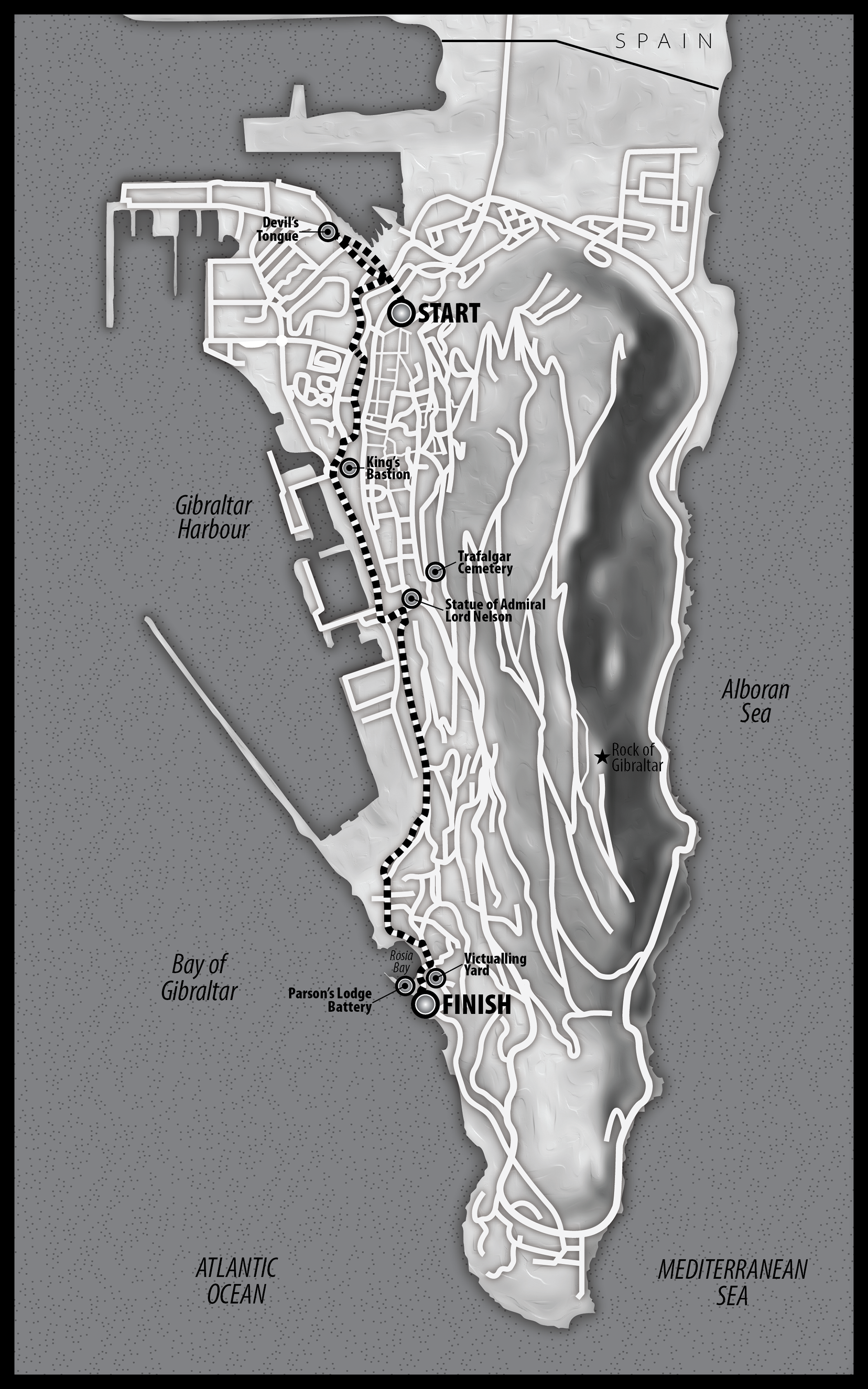 Was contracted to create a set of 9 maps to be used during a bicycle race in Gibraltar.