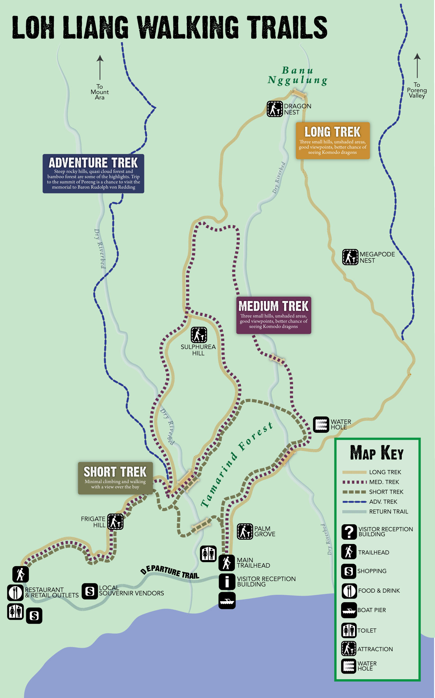 2 oversize maps created for Taman Nasional Komodo (Komodo National Park) in Indonesia. One hung over the desk at the park's main visitor center, the other at the main trailhead.