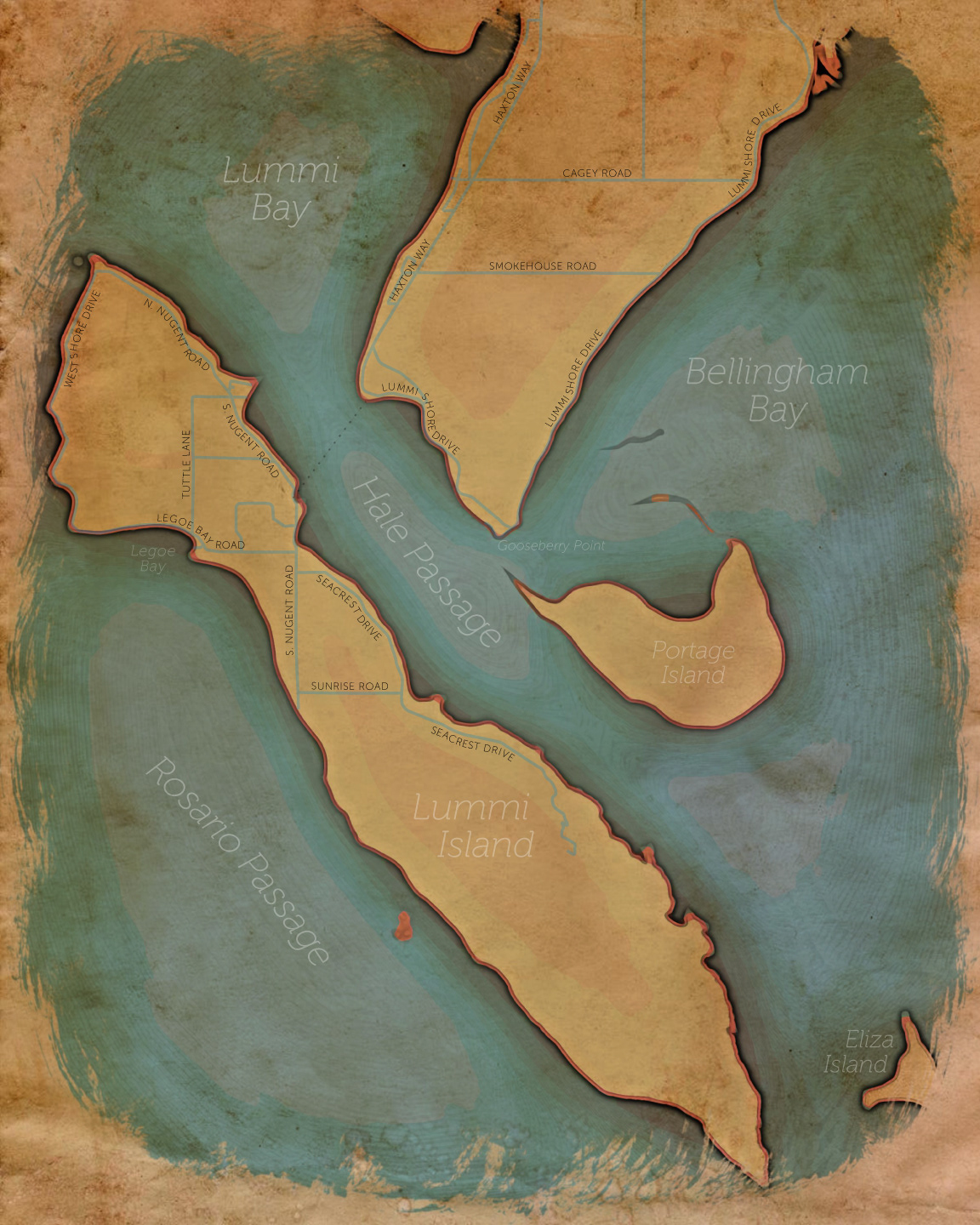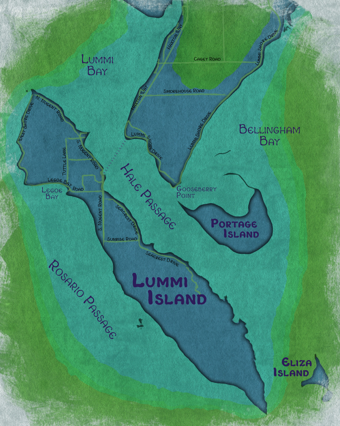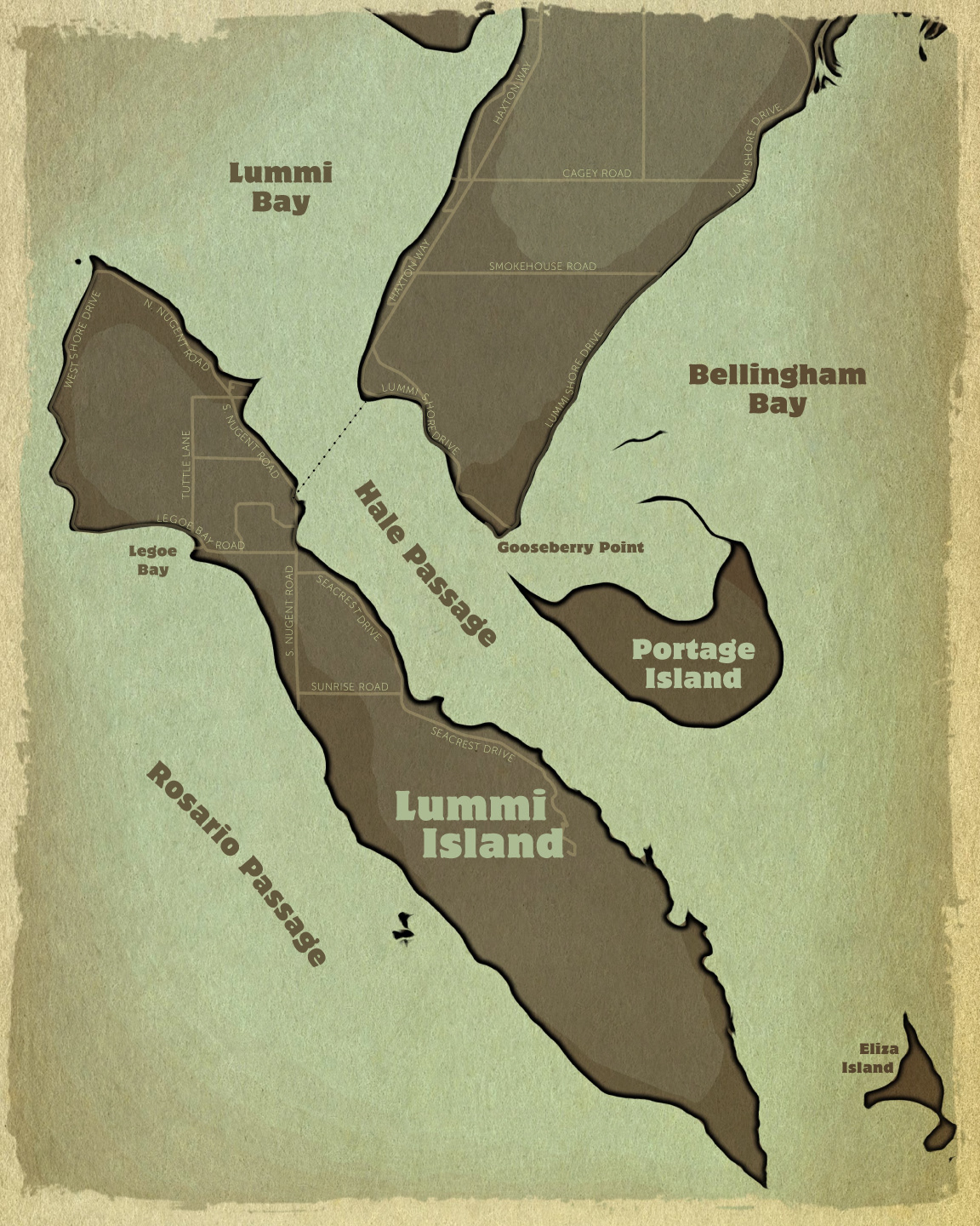 12 maps created for a friend who requested a map of Lummi Island, Washington State, which she will use as a Christmas gift.