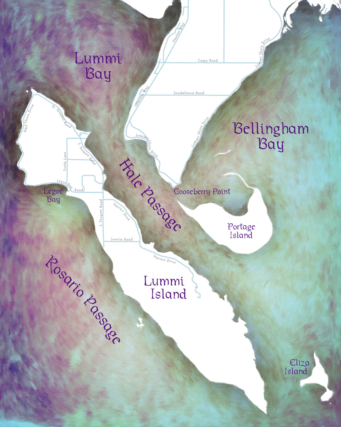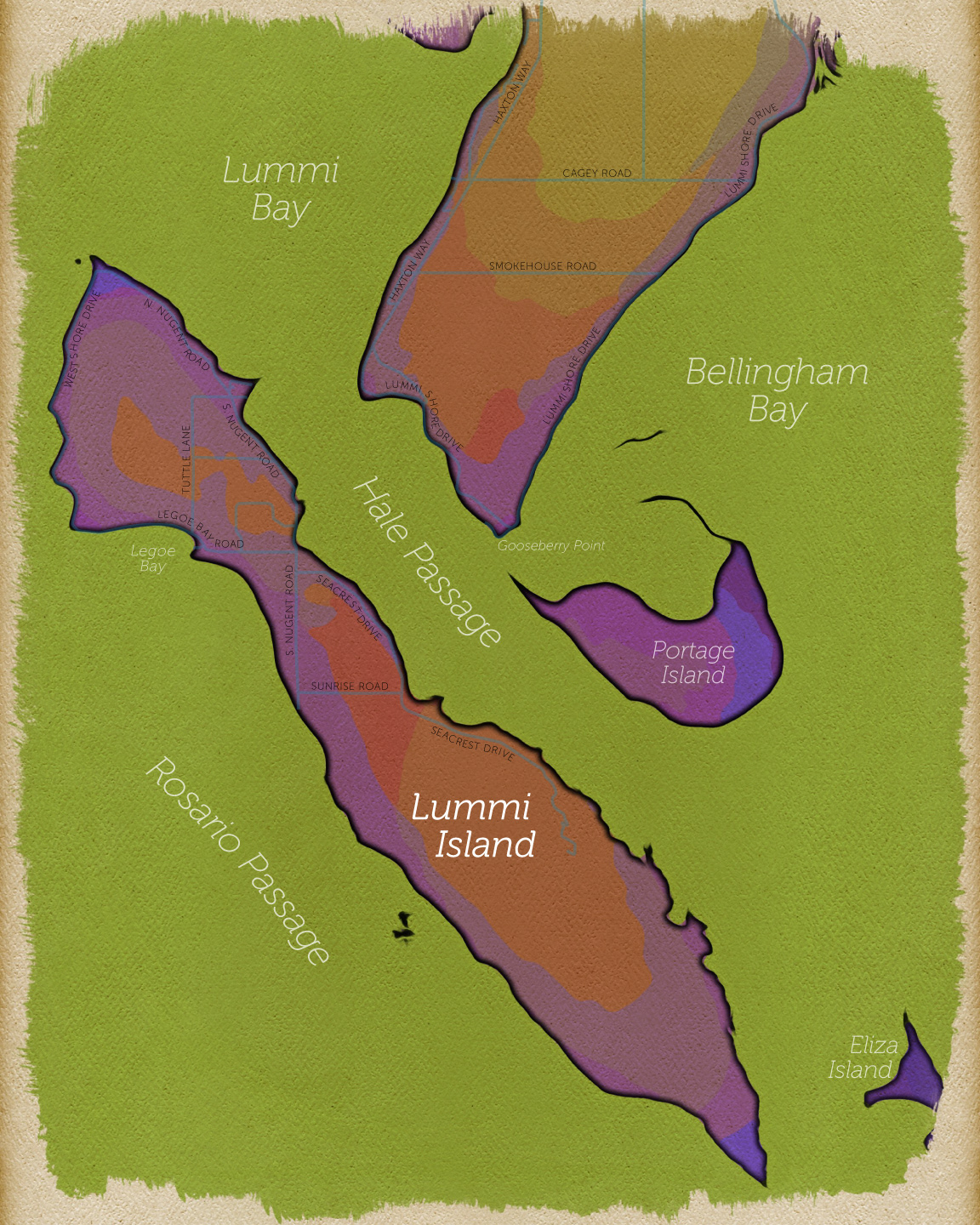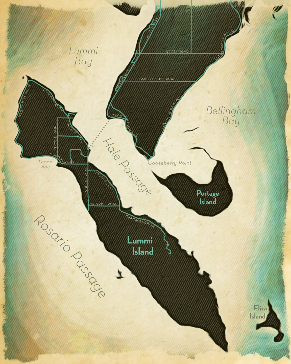 12 maps created for a friend who requested a map of Lummi Island, Washington State, which she will use as a Christmas gift.