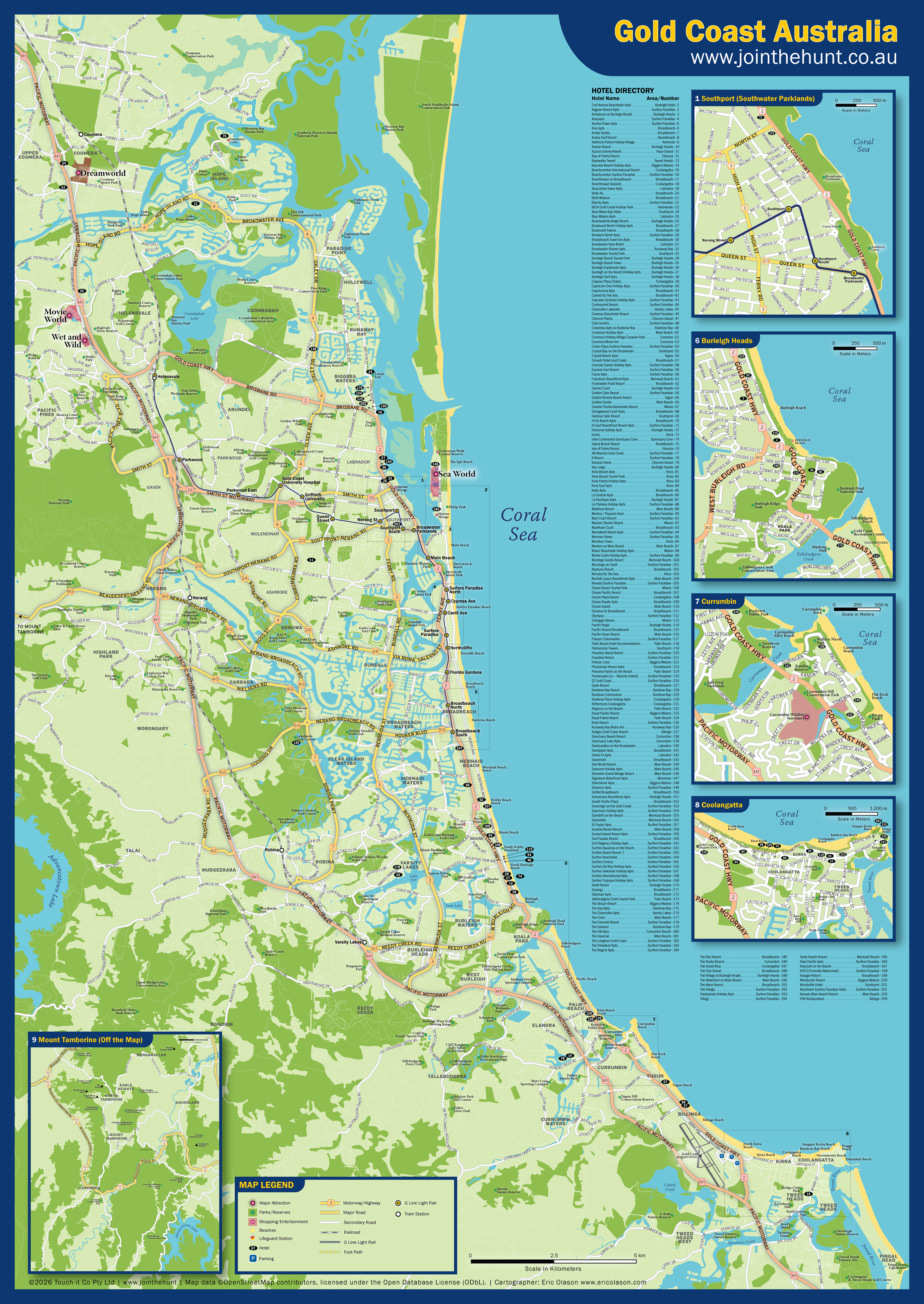 Single folded wall map of Gold Coast Australia. Created for a private client who contracted me through Upwork.com