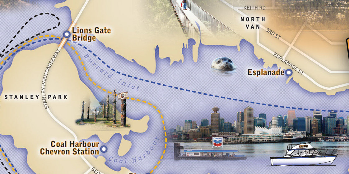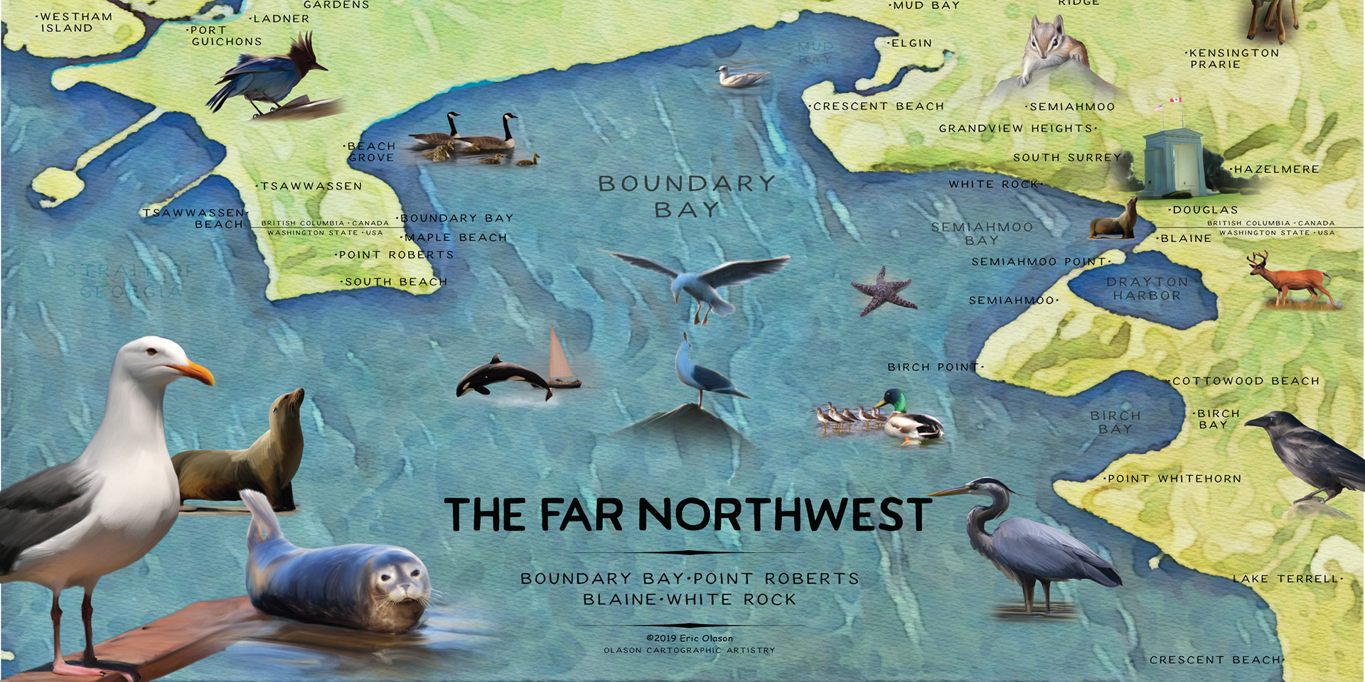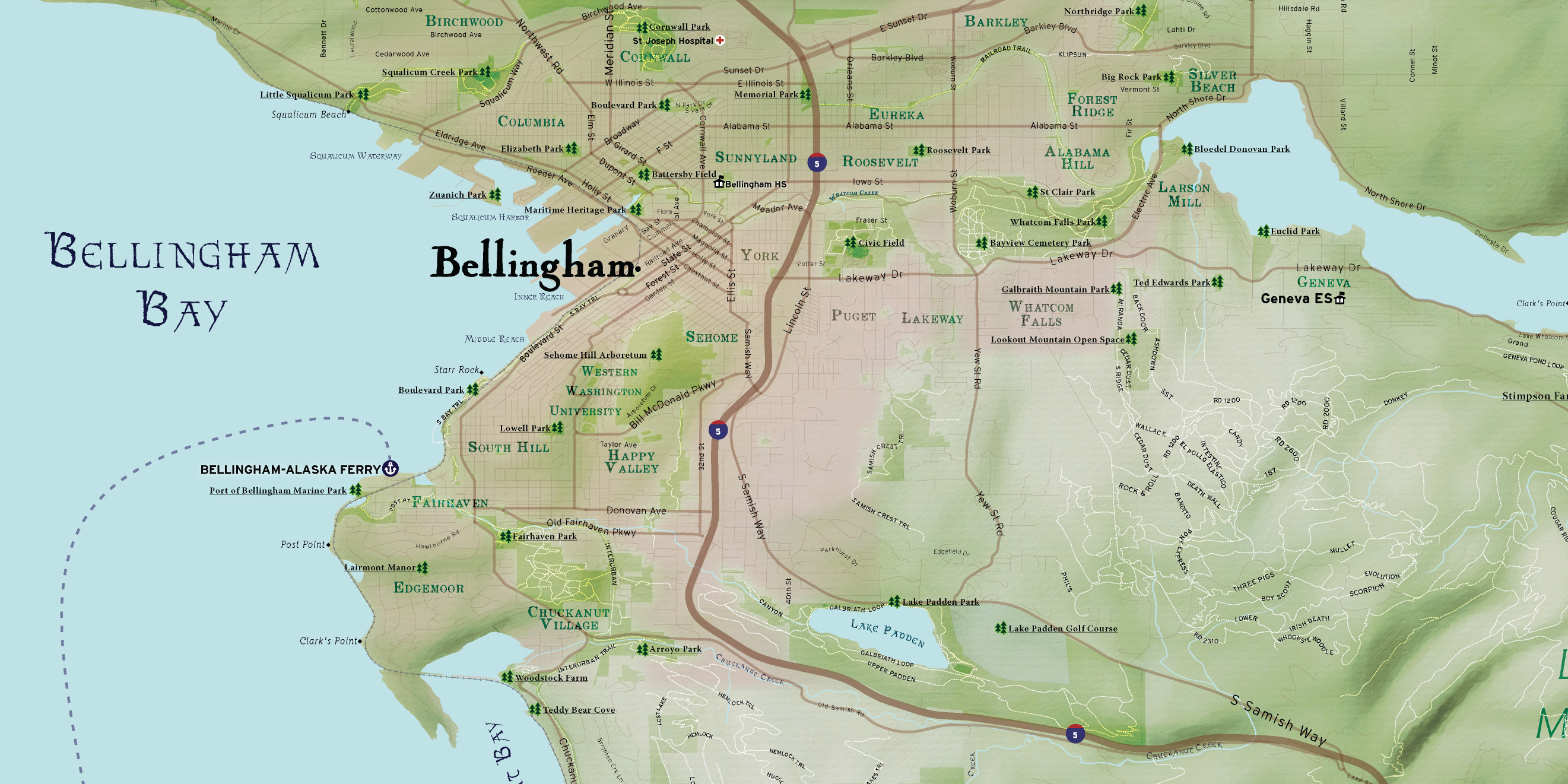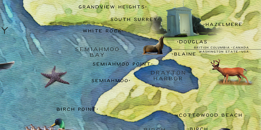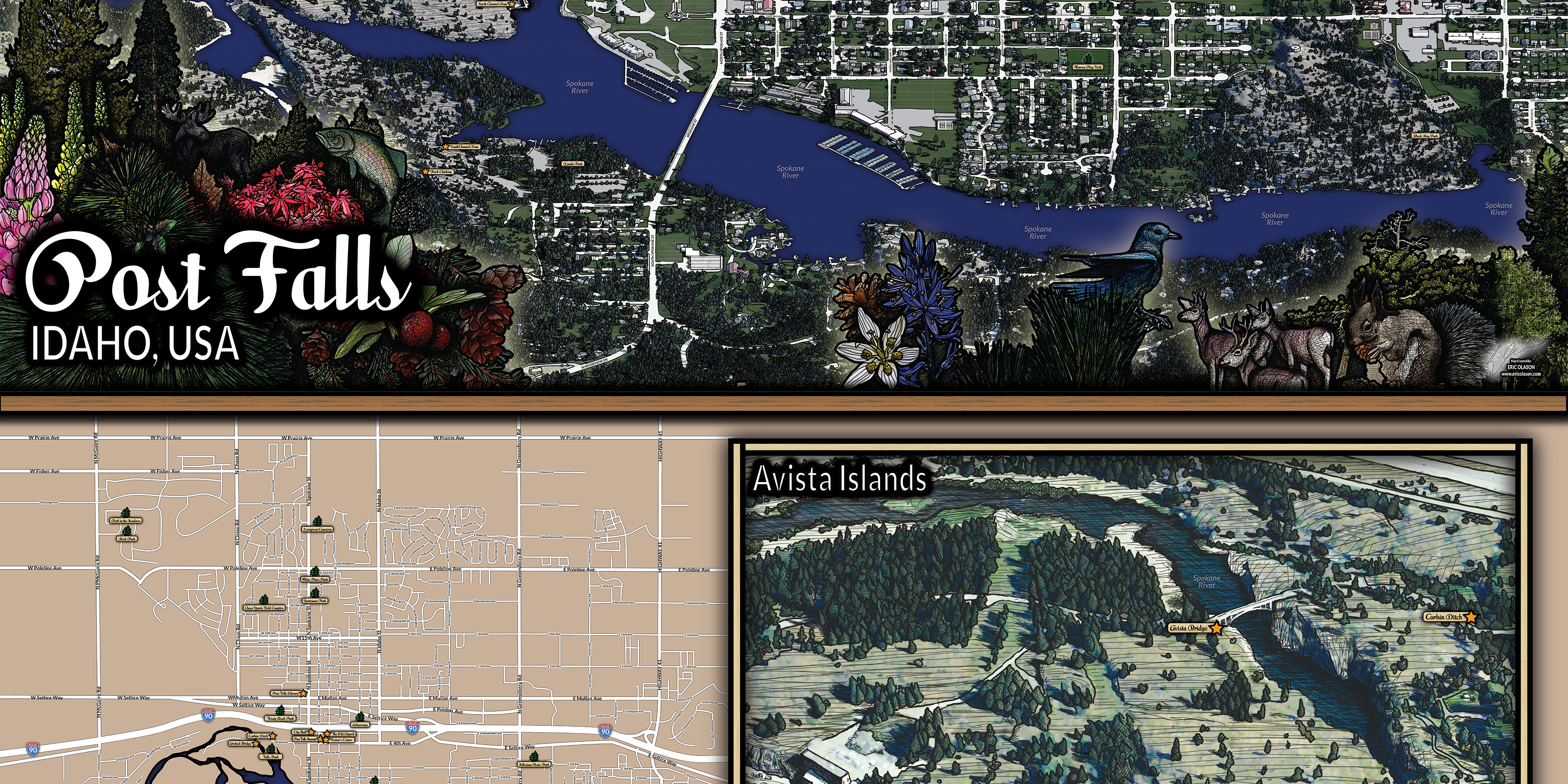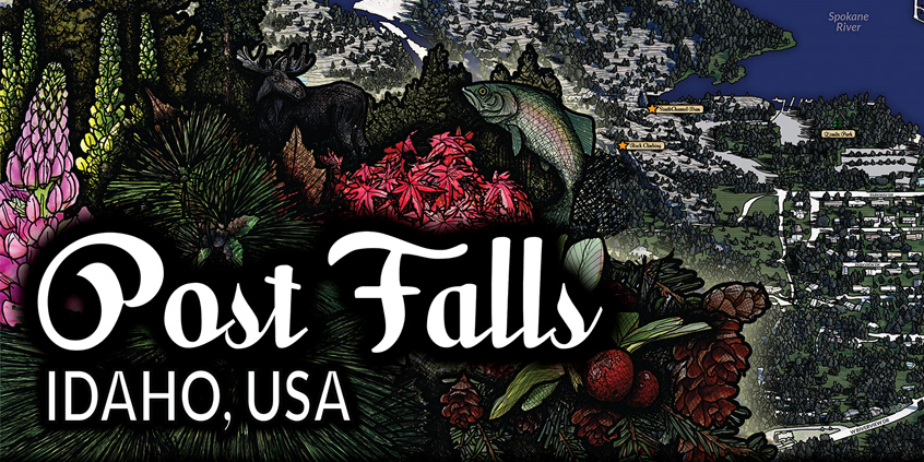 Post Falls Idaho (oversize hand illustrated kiosk map)