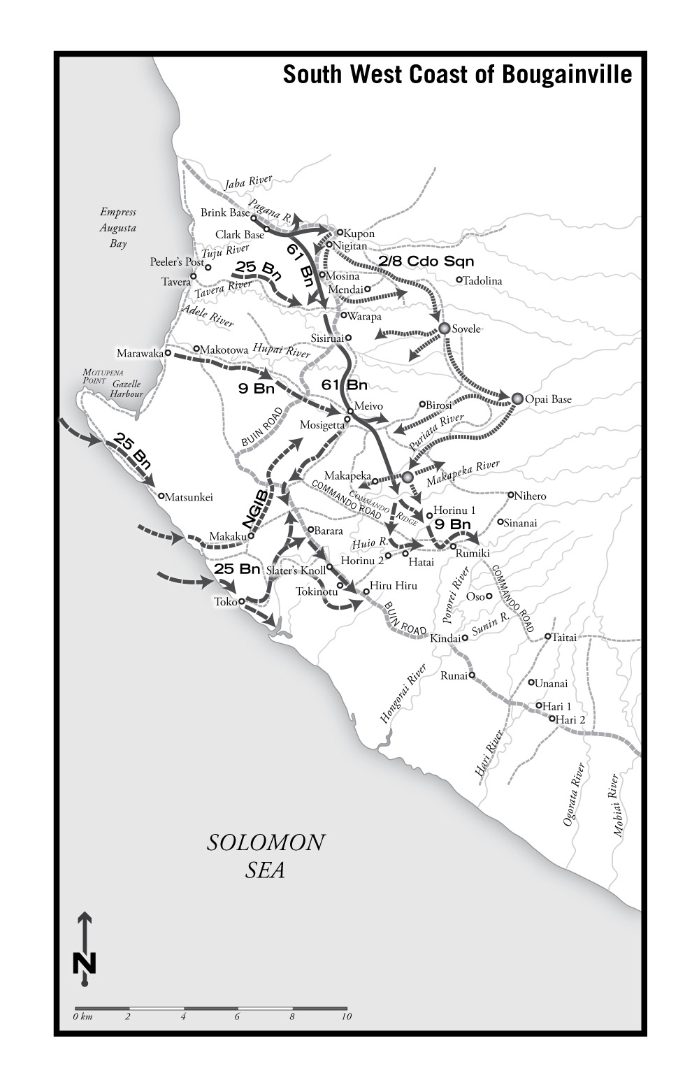 Set of 10 maps made for the book, The 25th Battalion in peace and war, 1918–45, written by Bob Doneley, published by Big Sky Publishing of Sydney, Australia.