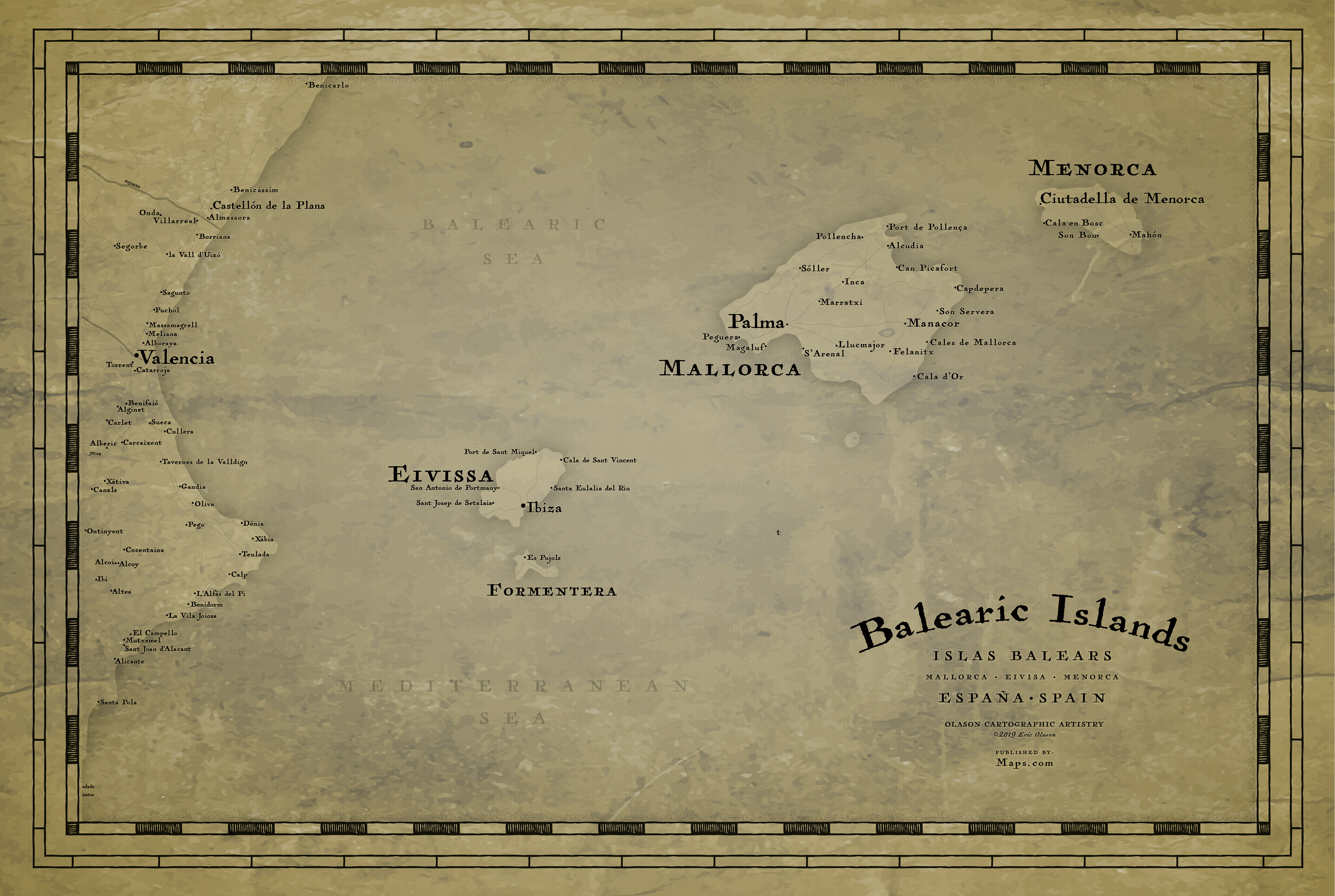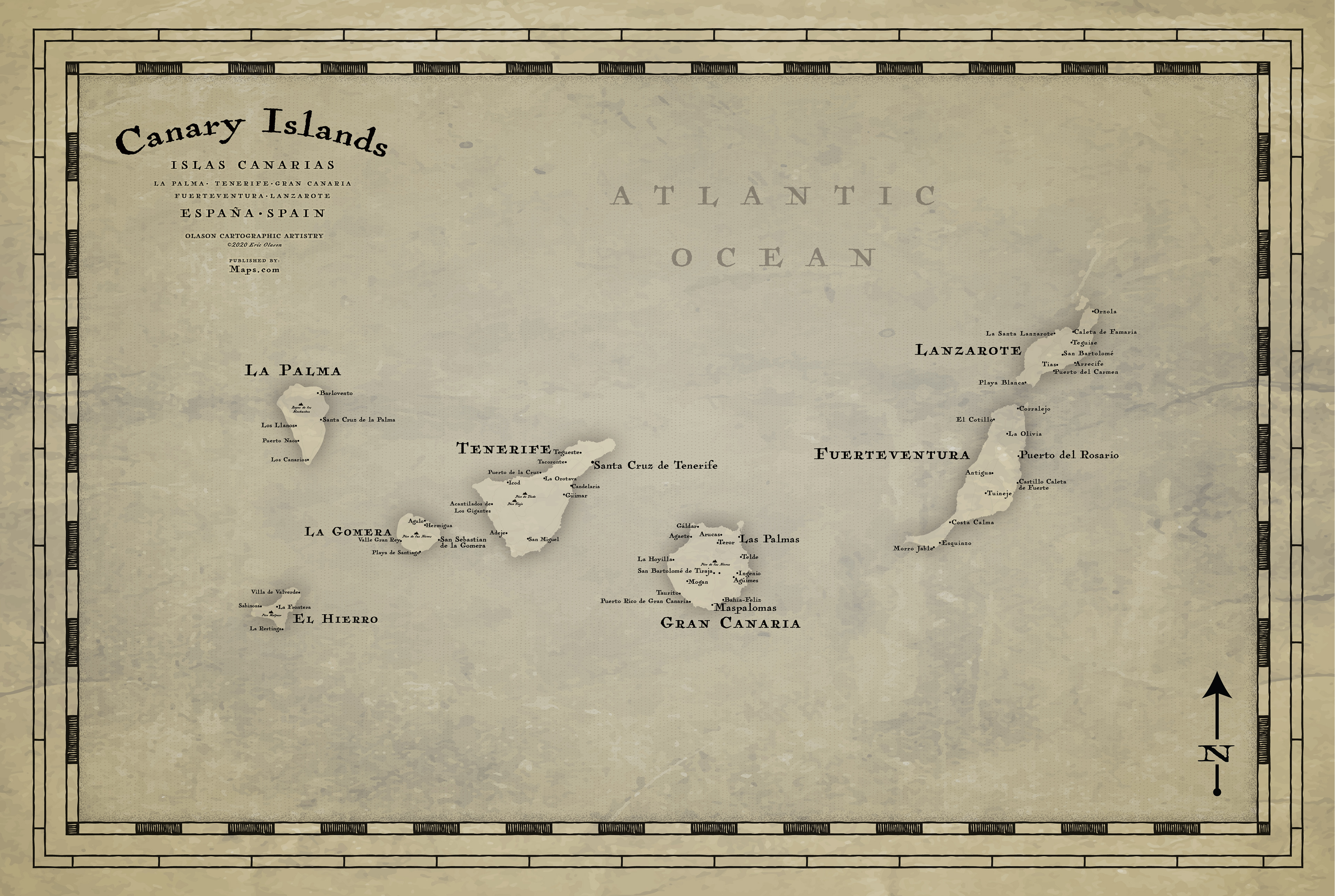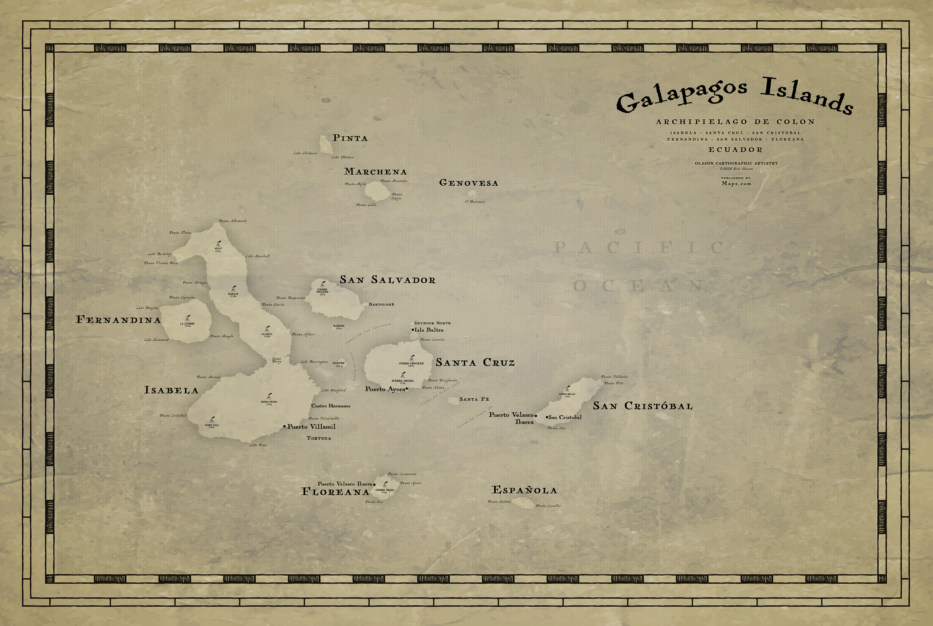 Set of 5 maps depicting world islands in an antique style. All maps will be sold on Maps.com starting the middle of 2021.